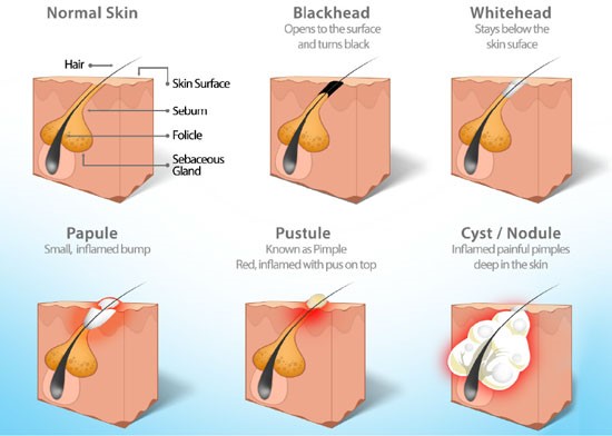 انواع مختلفی از آکنه وجود دارد، از جمله: